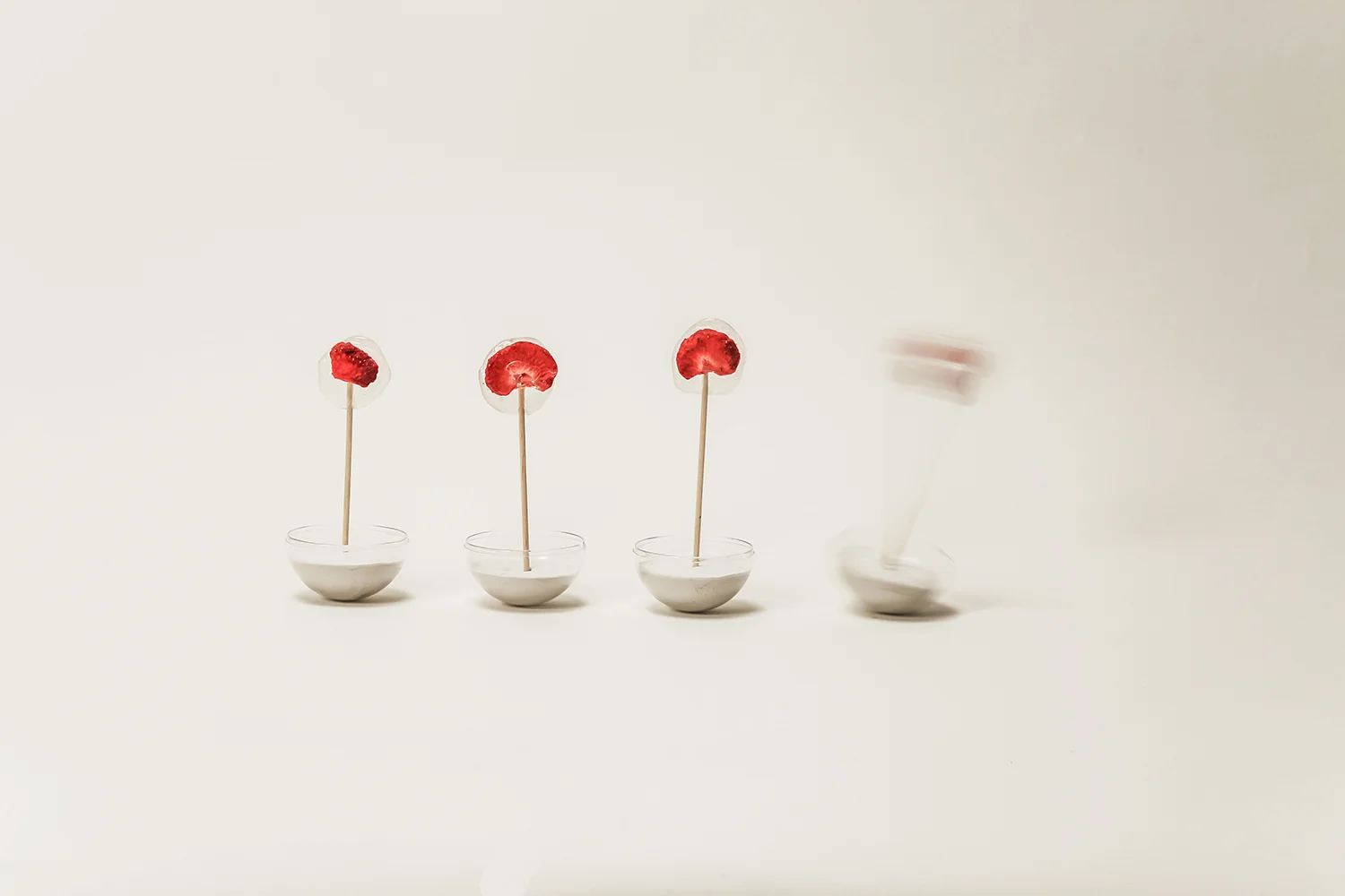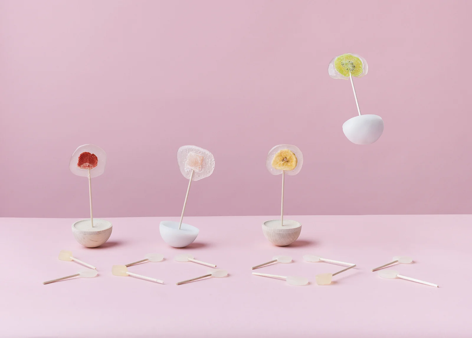 Developed from this point of view, this project presents a set of toy-like candy bars. Using the principle of a roly-poly toy, food rarely touches the ground when it is dropped or pushed over. After that, it only wobbles for a few moments and returns to the upright position. In this way, I intended to play around with food myths by twisting them in an interactive, enjoyable way.