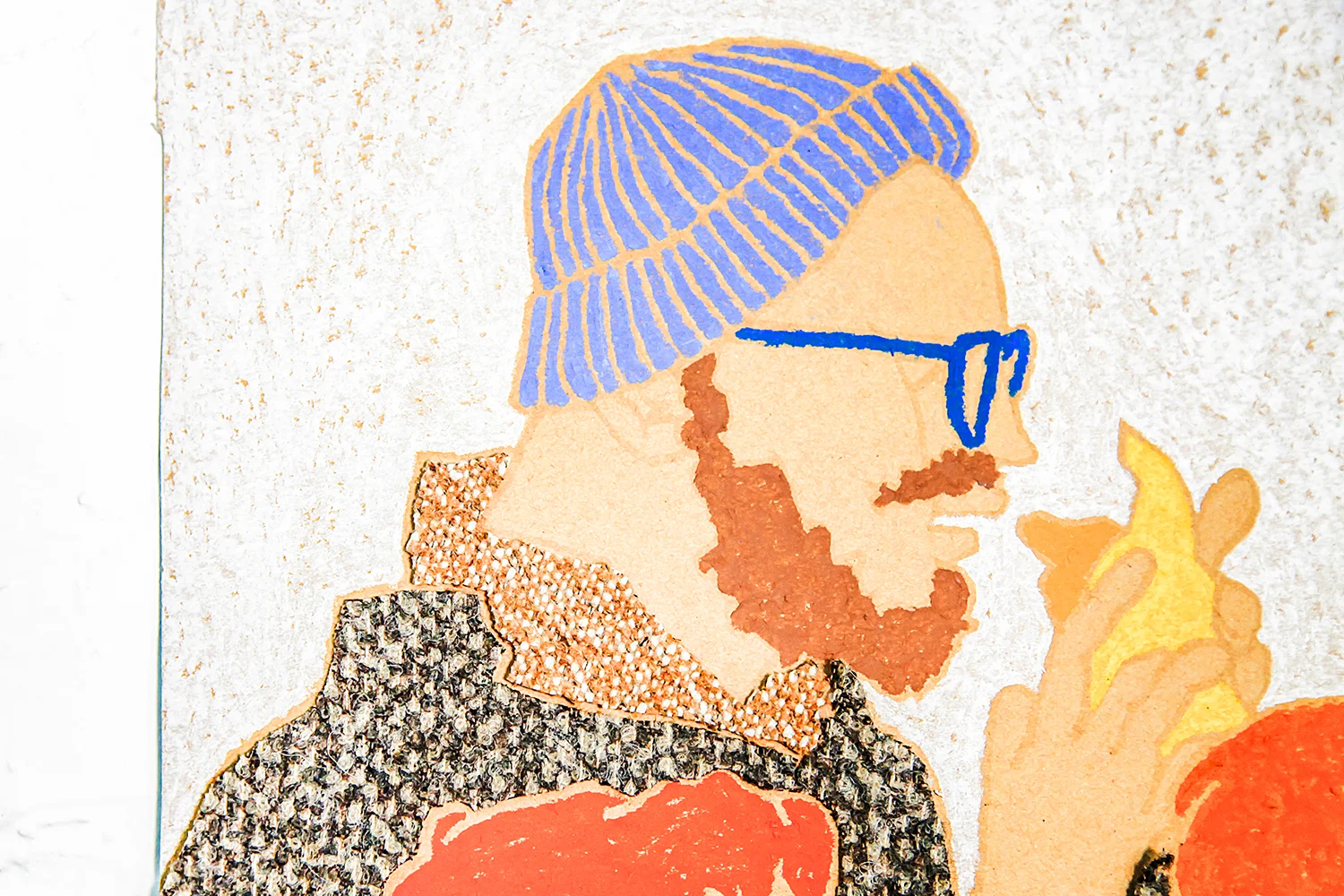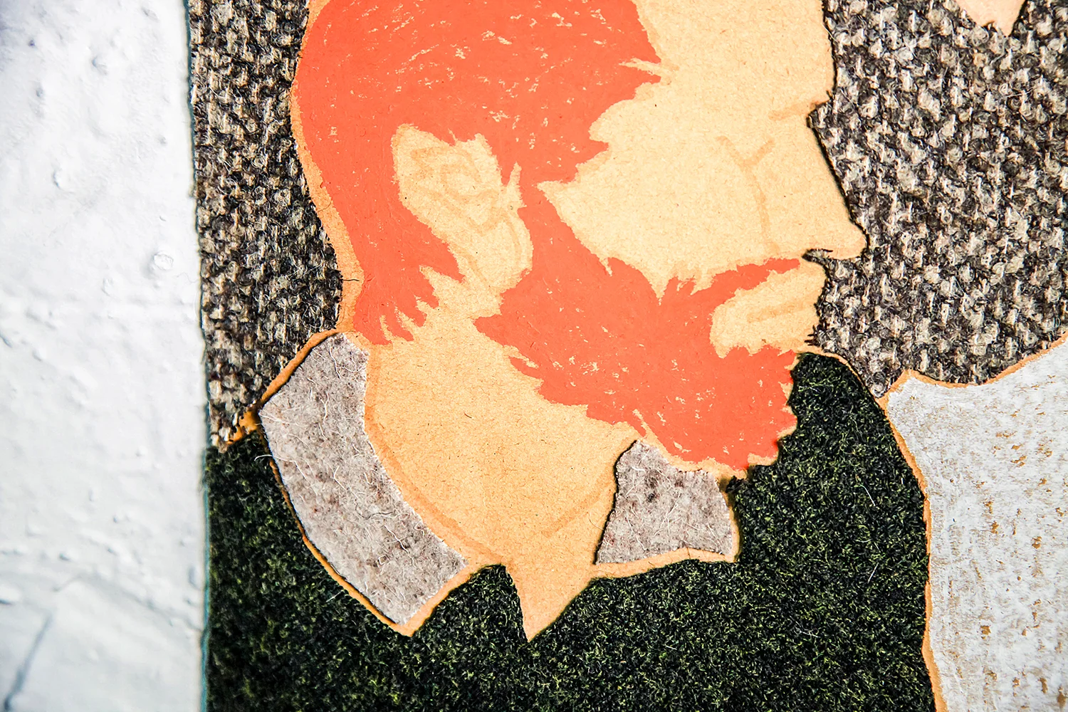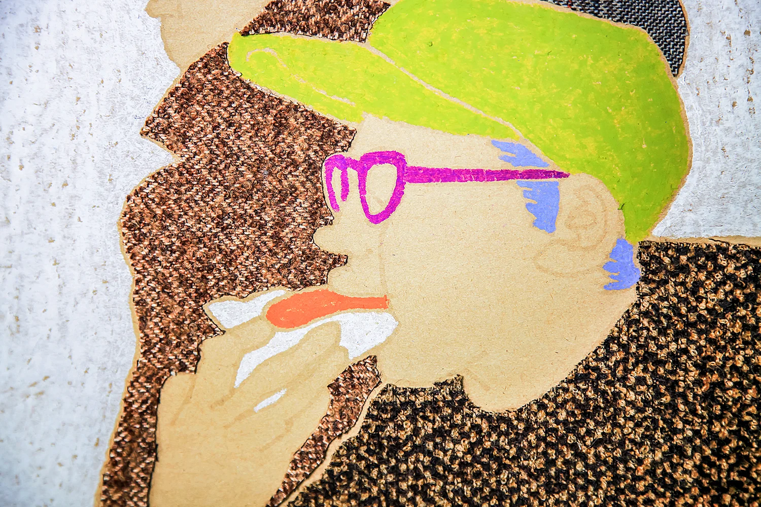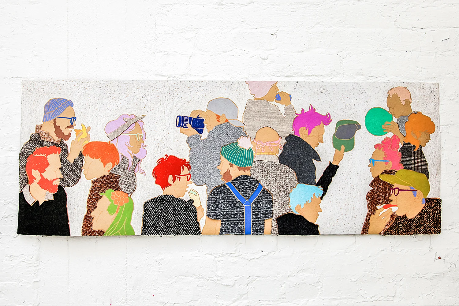 These works were implemented with ordinary materials, such as children's crayons and craft paper, creating the texture of roughness through roughly painted blocks of colours. In particular, the street scene can be felt tactually by means of wool fabrics which remind of Icelandic national product and gives the mood of a cold climate. Also, the translucent lines evoke the feelings of openness in order for each figure to breathe.